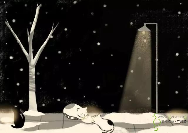 终于找到一盏灯可以取暖 却发现已被别的猫捷足先登 路还很长,而夜已来